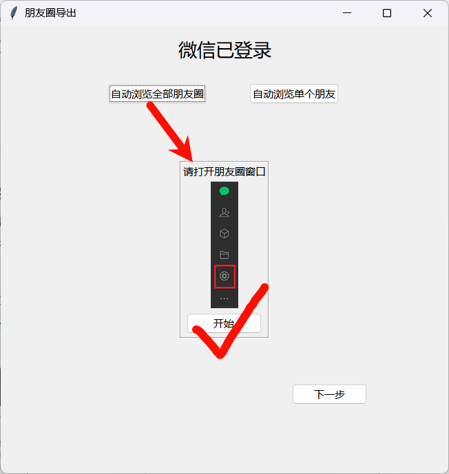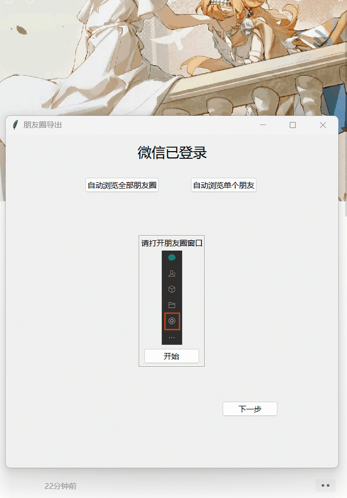 选择第一种方式将自动浏览和导出所有微信好友的朋友圈记录,但是有一个限制,即只能导出前100天的记录(这是微信的限制,无法绕过)。