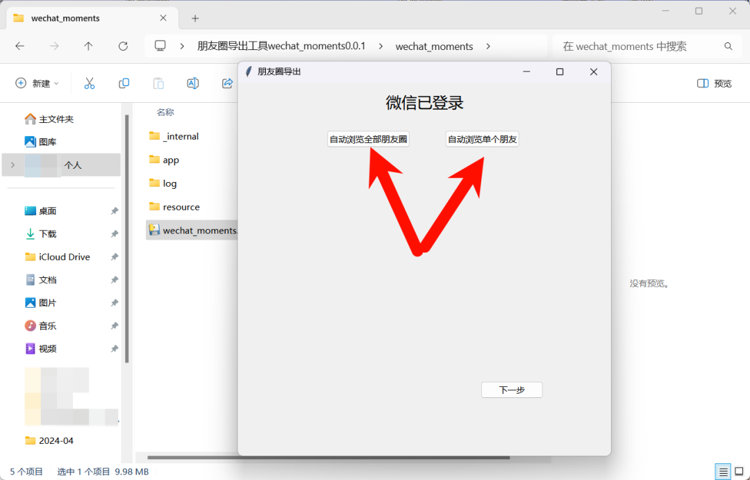 在运行该软件之前,请确保你的电脑上已经登录了微信账号。由于软件原理的限制,它只能导出你在微信上浏览过的朋友圈记录。如果在运行软件后出现异常情况,请先退出微信,然后重新启动软件