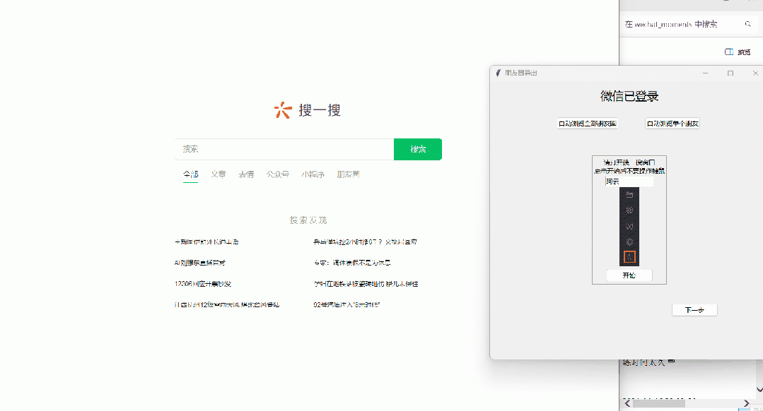 不过这一次是在微信的搜一搜窗口中进行操作,需要输入好友的名称,以便脚本能够进行后续的操作。